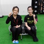 最後にバランスディスクを使って矯正方法をご案内します。こちらは道具を使用するのでどなたでも変化がわかります。まず両足でディスク1つの上に乗っていきます。足の幅は握り拳ひとつ分空けて立ちましょう。
