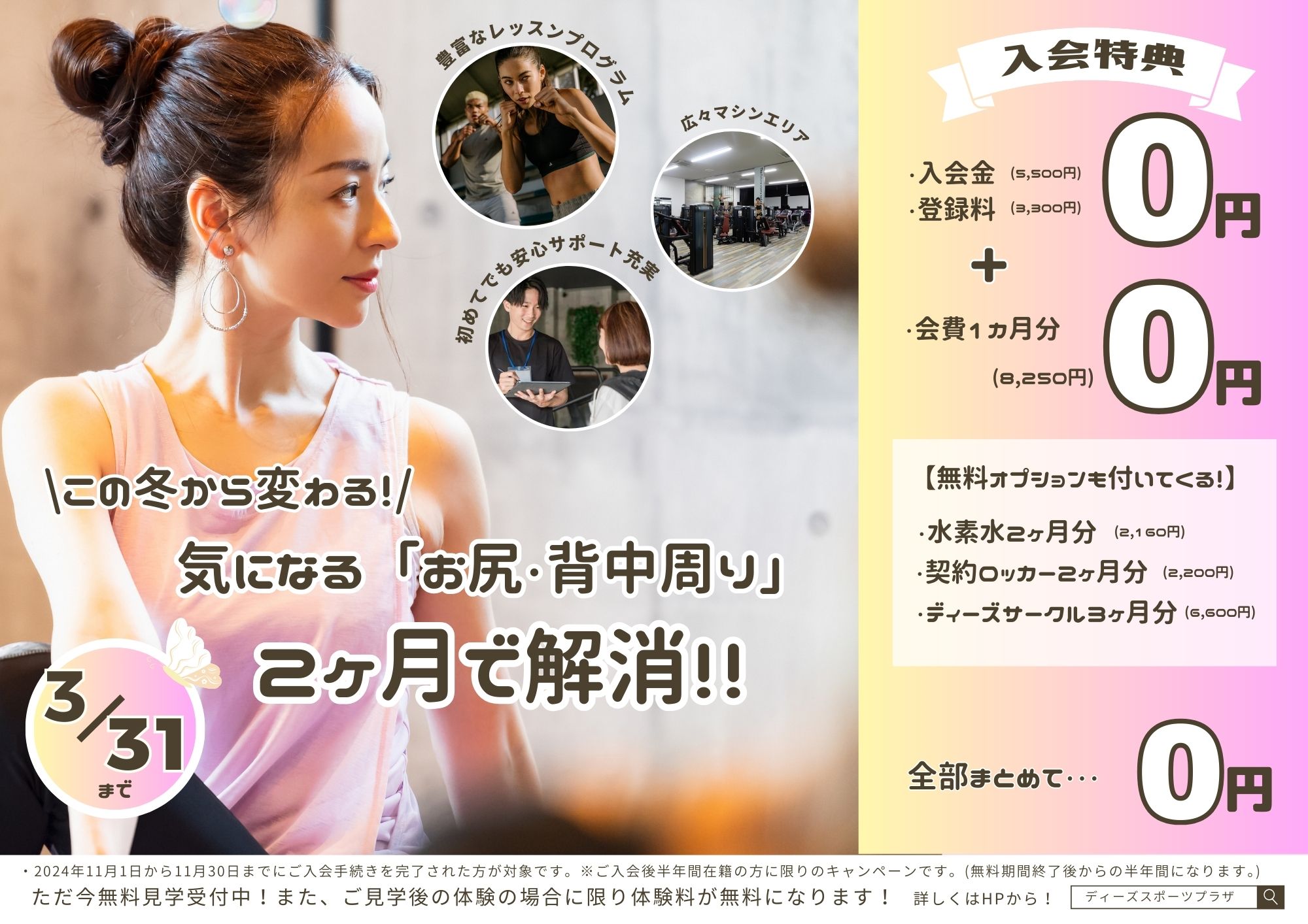 【2月入会キャンペーン開催中!!】 特典① 入会金0円特典② 登録料0円特典③ 月会費1ヵ月0円特典④ 水素水2ヶ月0円特典⑤ レンタルタオル2ヶ月0円特典⑥ サークル3か月0円特典⑦ 契約ロッカー2か月0円 キャン […]